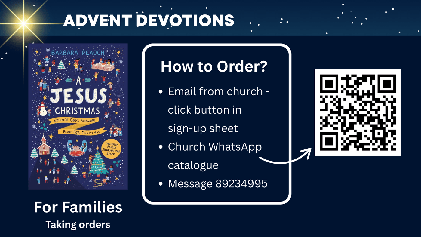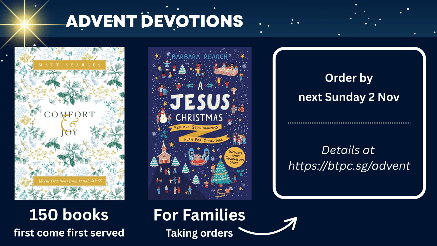 Note: If you did not receive the email sent from church "[BTPC] Advent Devotions (Families - order by 2 Nov 2025)" sent on Sat 25 Oct,