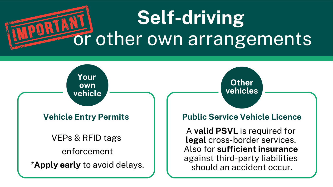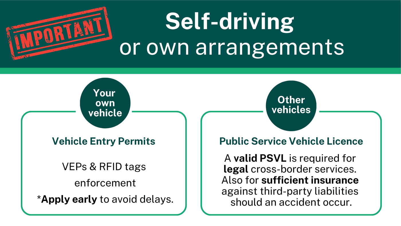 You might like to consider driving or taking the cross-border taxi option or public transport, as the chartered shared bus/van may not have compatible seatbelts.