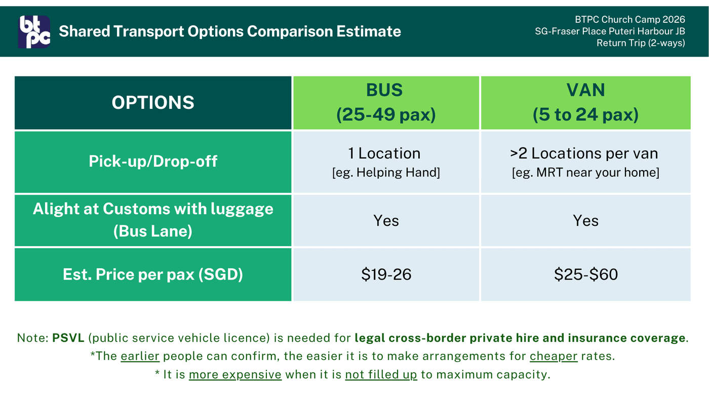 - The total cost of the vehicle (bus or van) is shared equally among all passengers taking that option.
