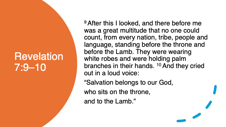Uncountable Christians from every nation praising God and Jesus together