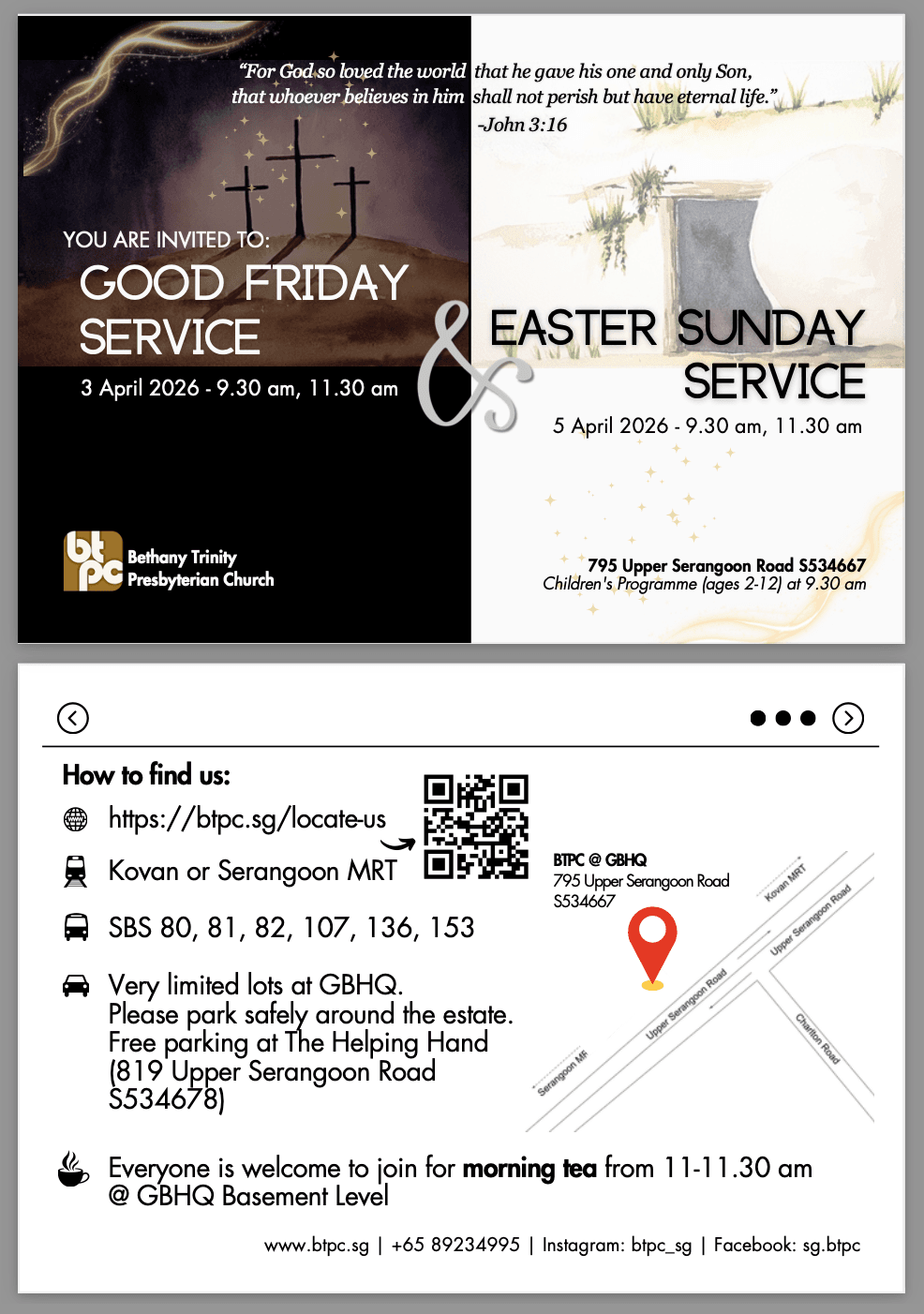 9.30 am & 11.30 am Sunday Services Usually at 795 Upper Serangoon Road & 19F Charlton Lane (Contact for more info) Locate Us!